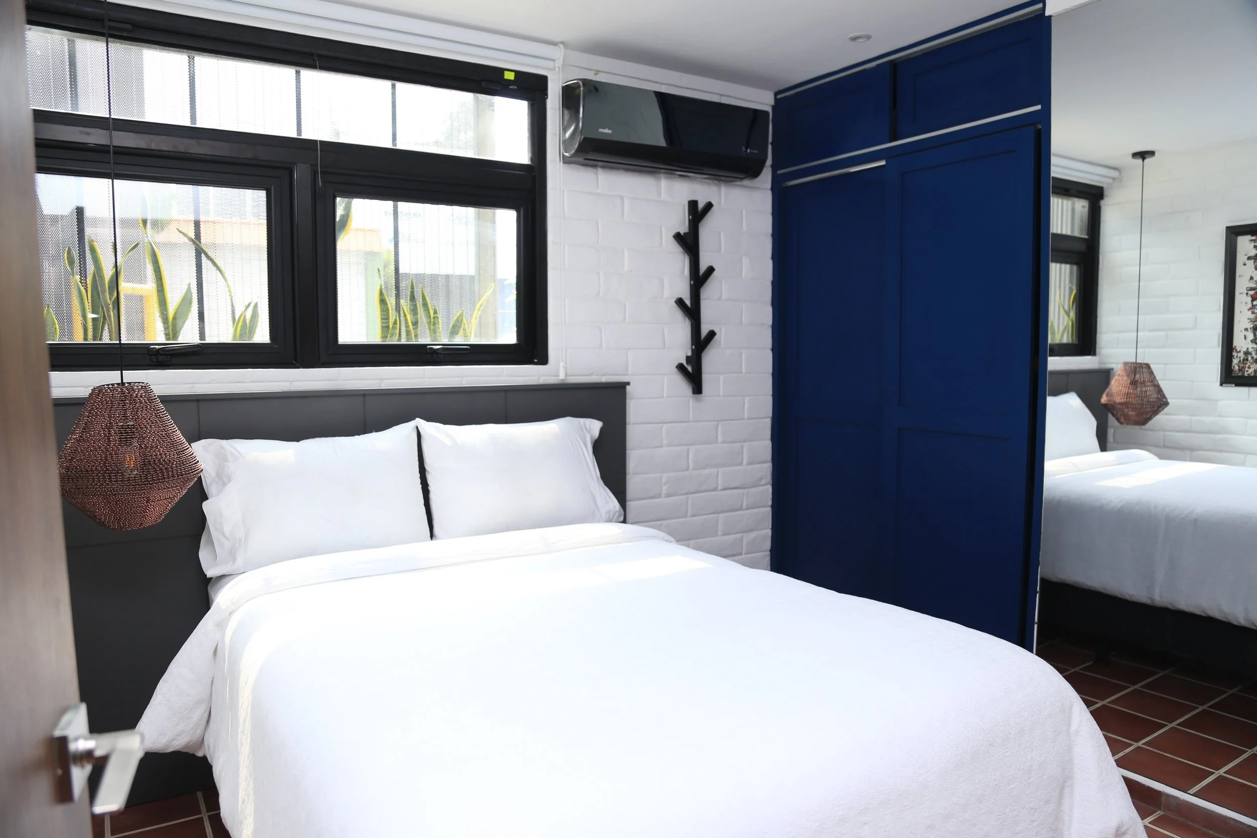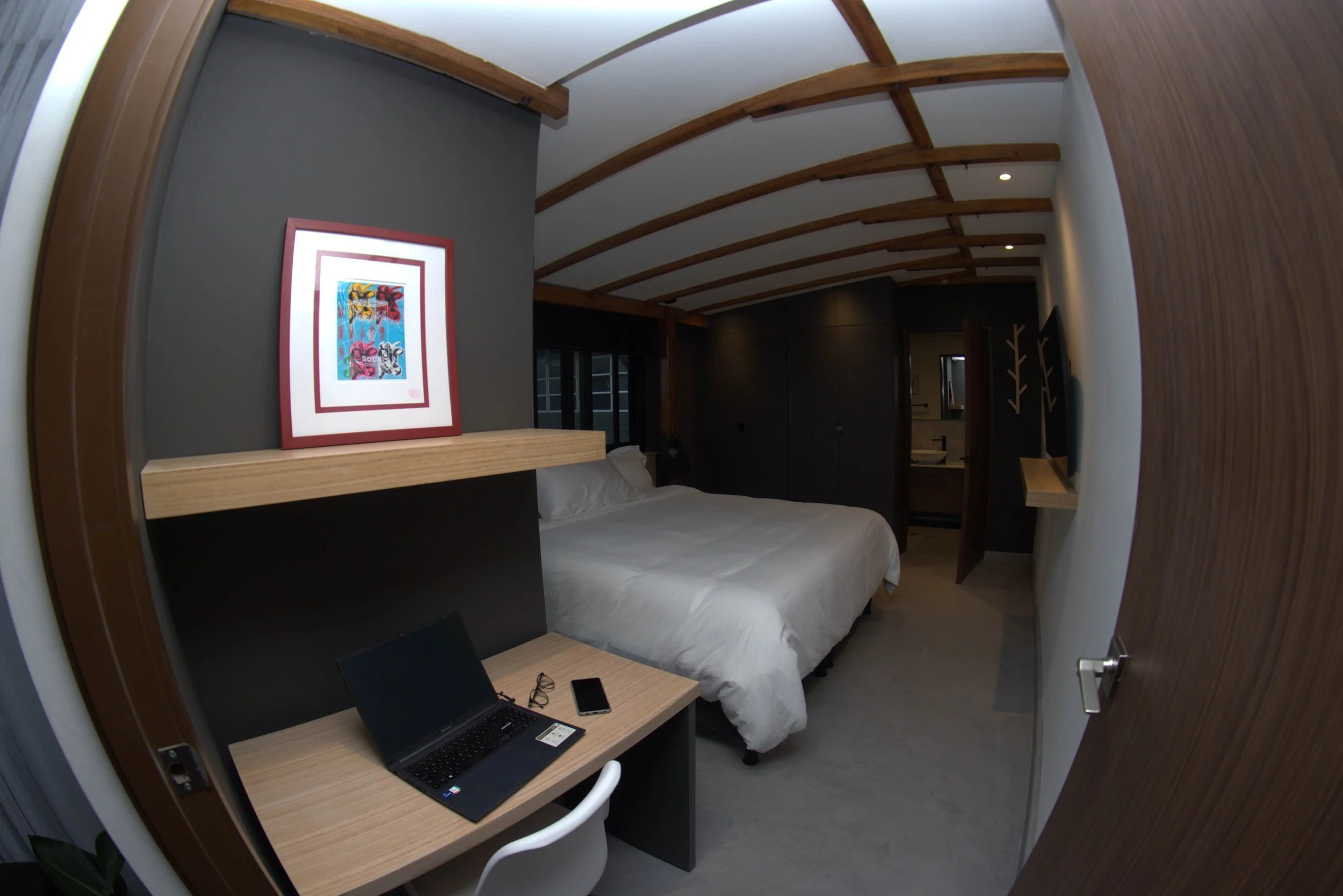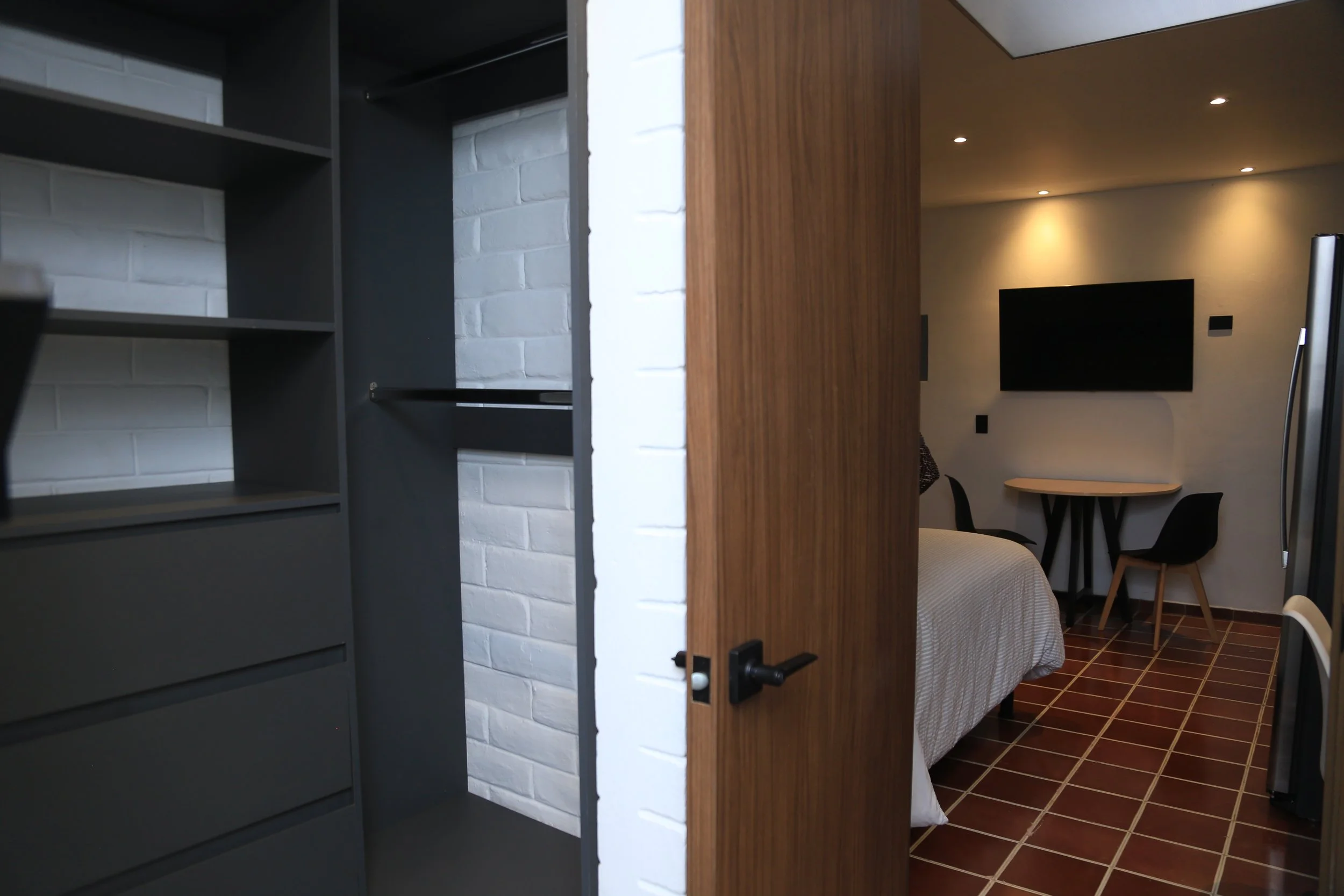 La suite Octavio Paz, con acceso directo y vista hacia San Salvador, cuenta con 21 m2, está enfocada a personas solteras o parejas, que necesitan un espacio cómodo y privado en un área céntrica.