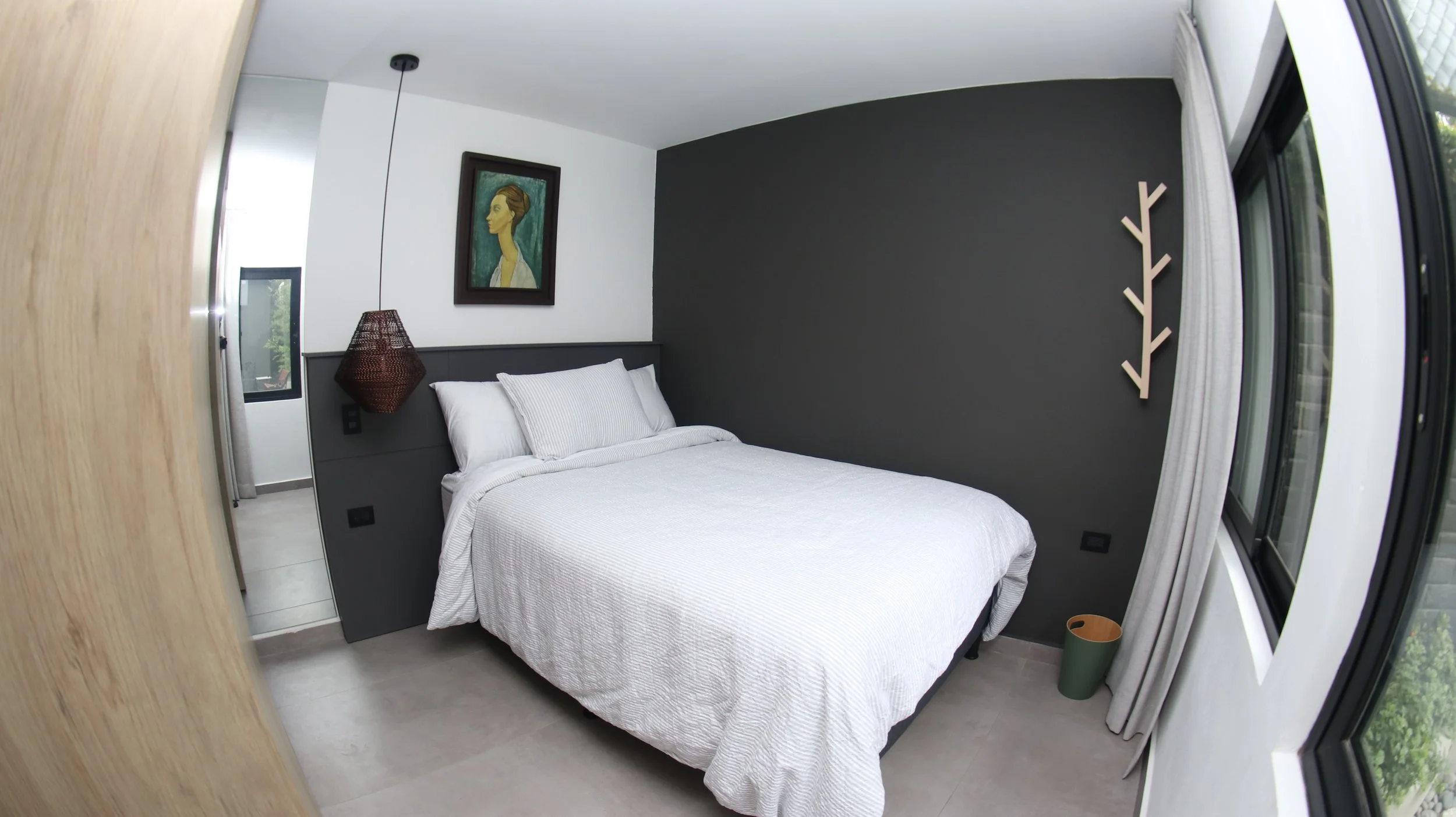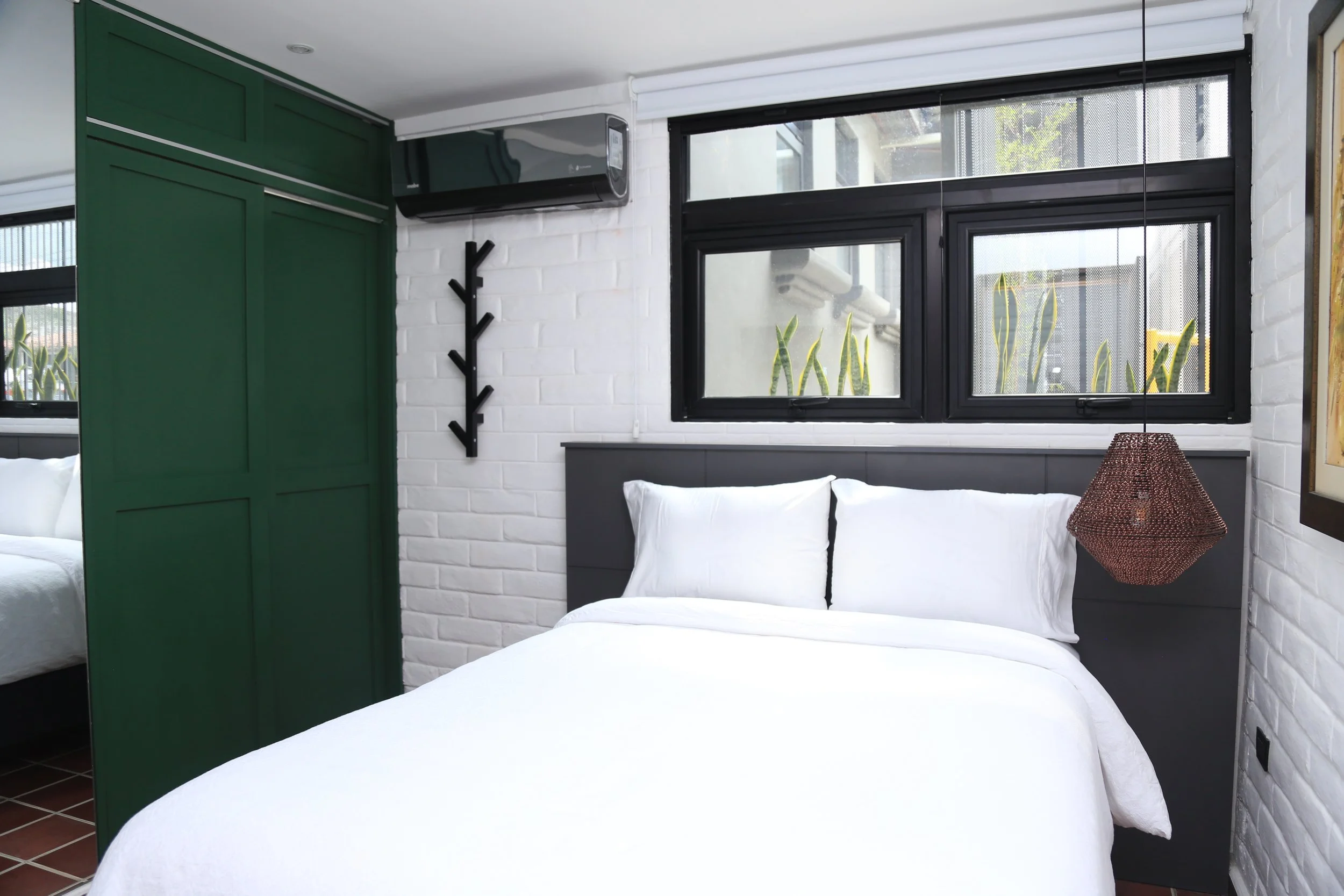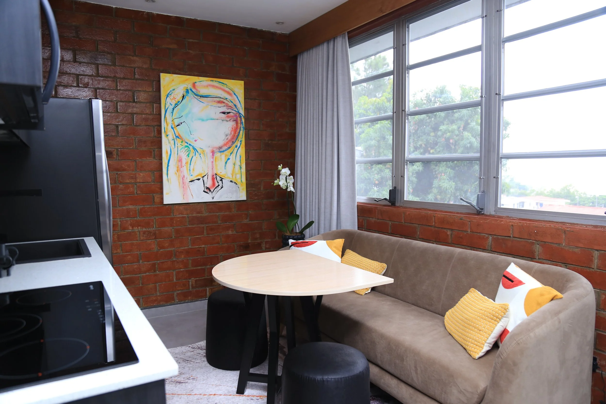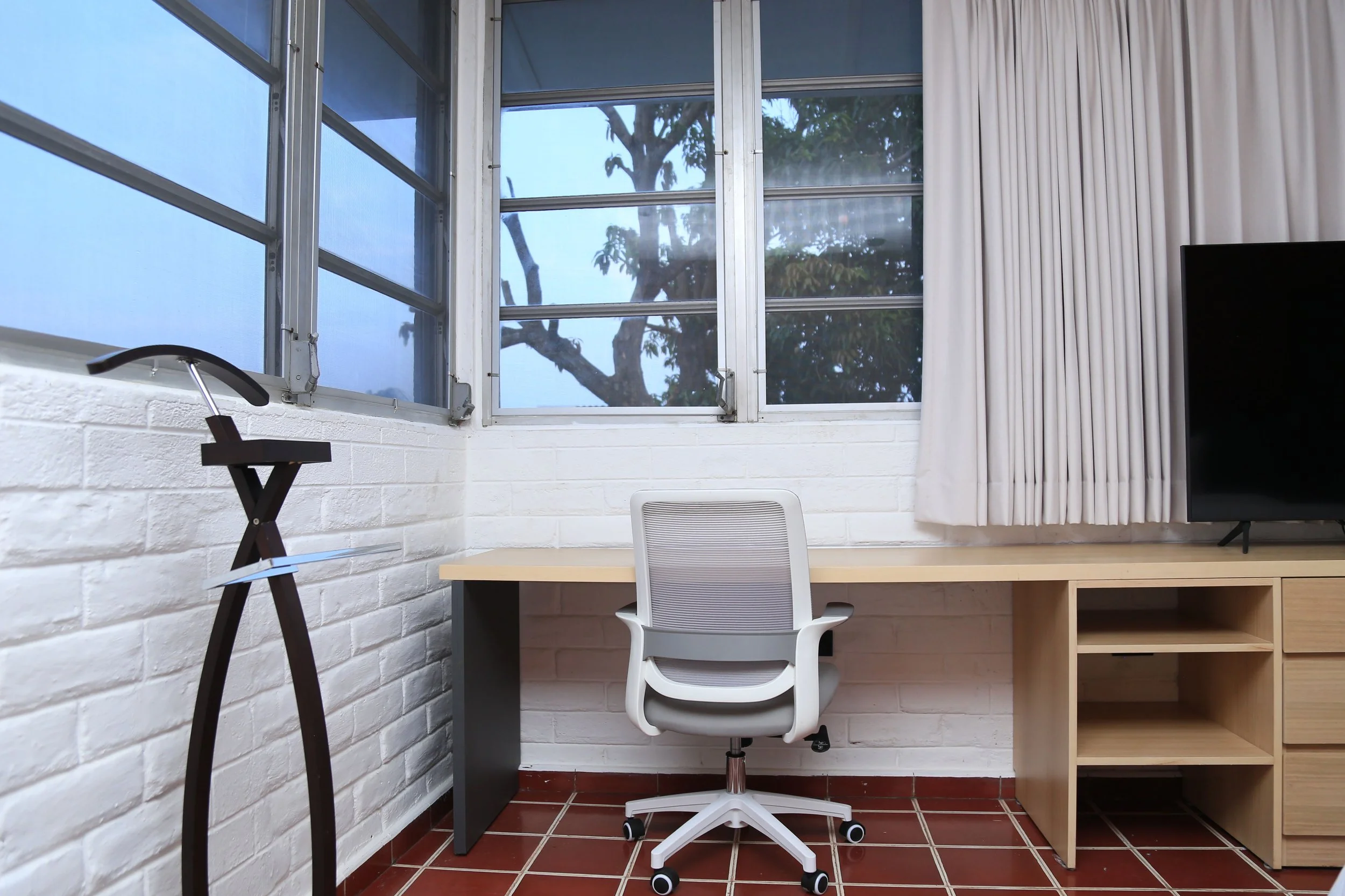 La suite Octavio Paz, con acceso directo y vista hacia San Salvador, cuenta con 21 m2, está enfocada a personas solteras o parejas, que necesitan un espacio cómodo y privado en un área céntrica.