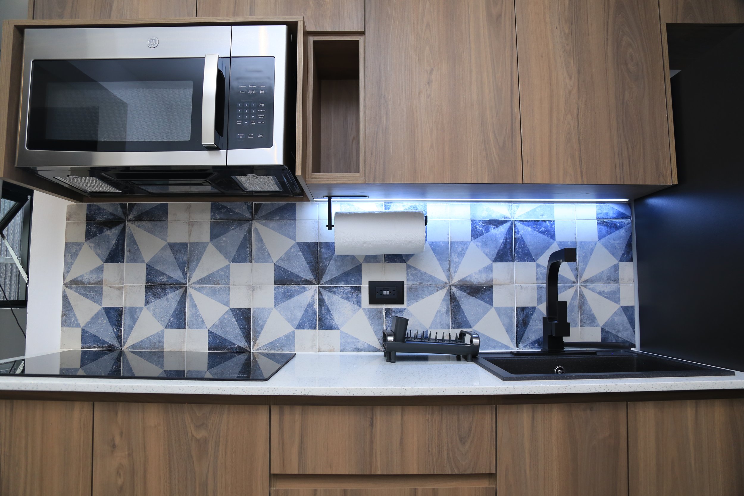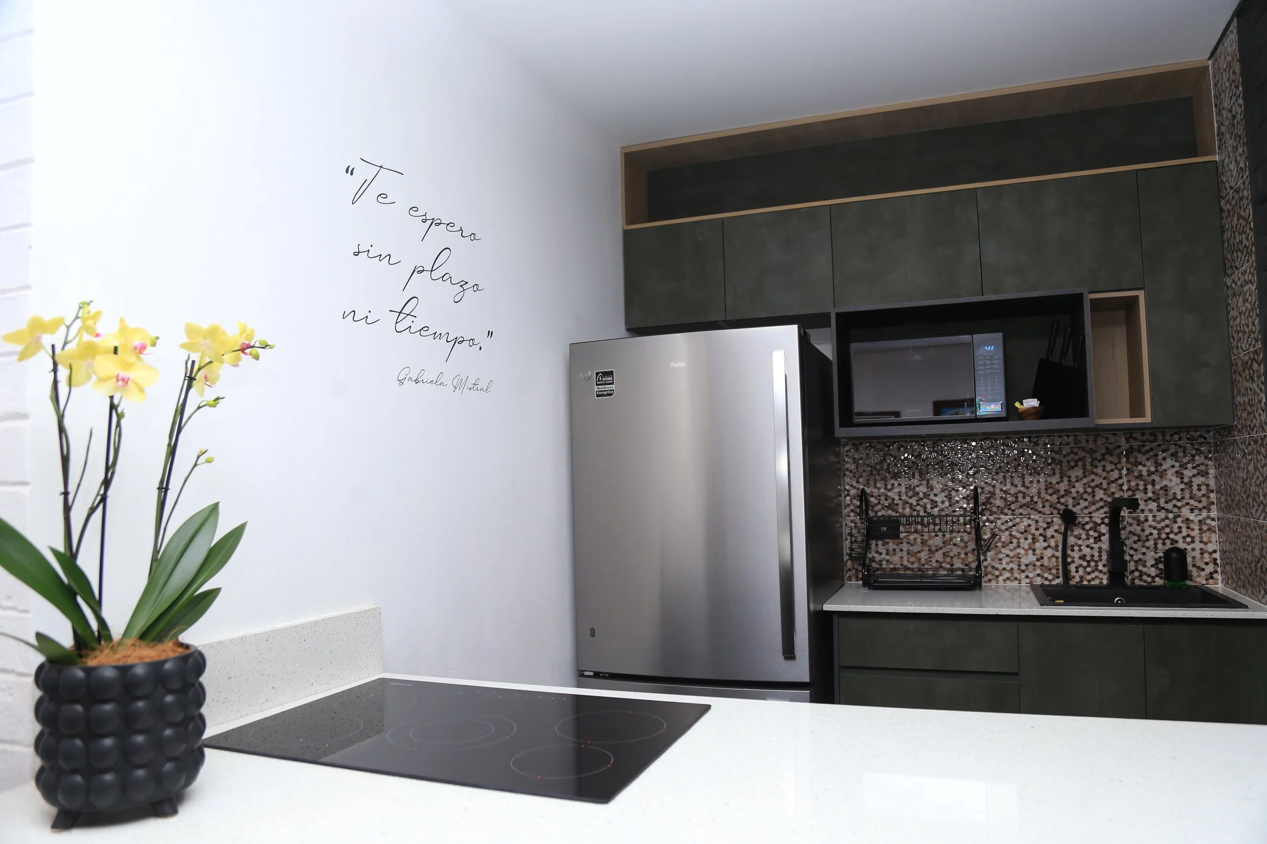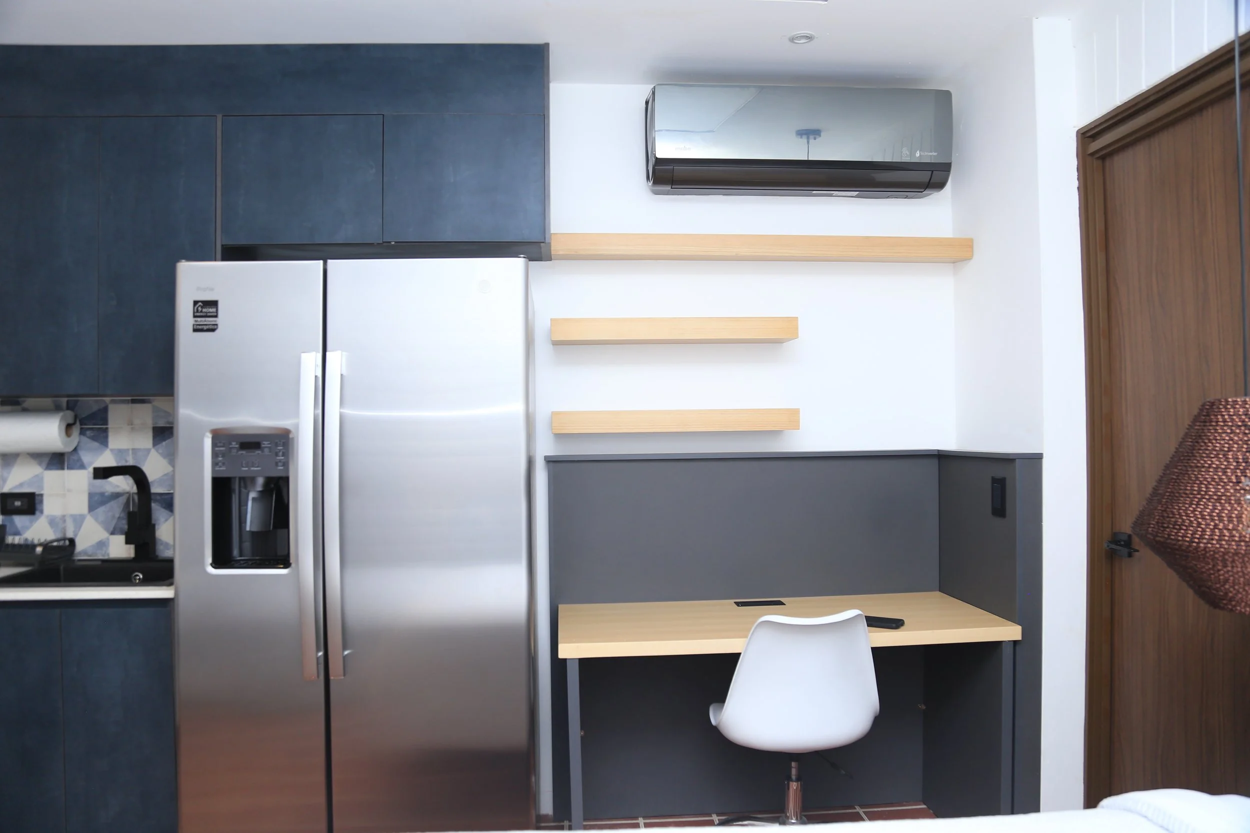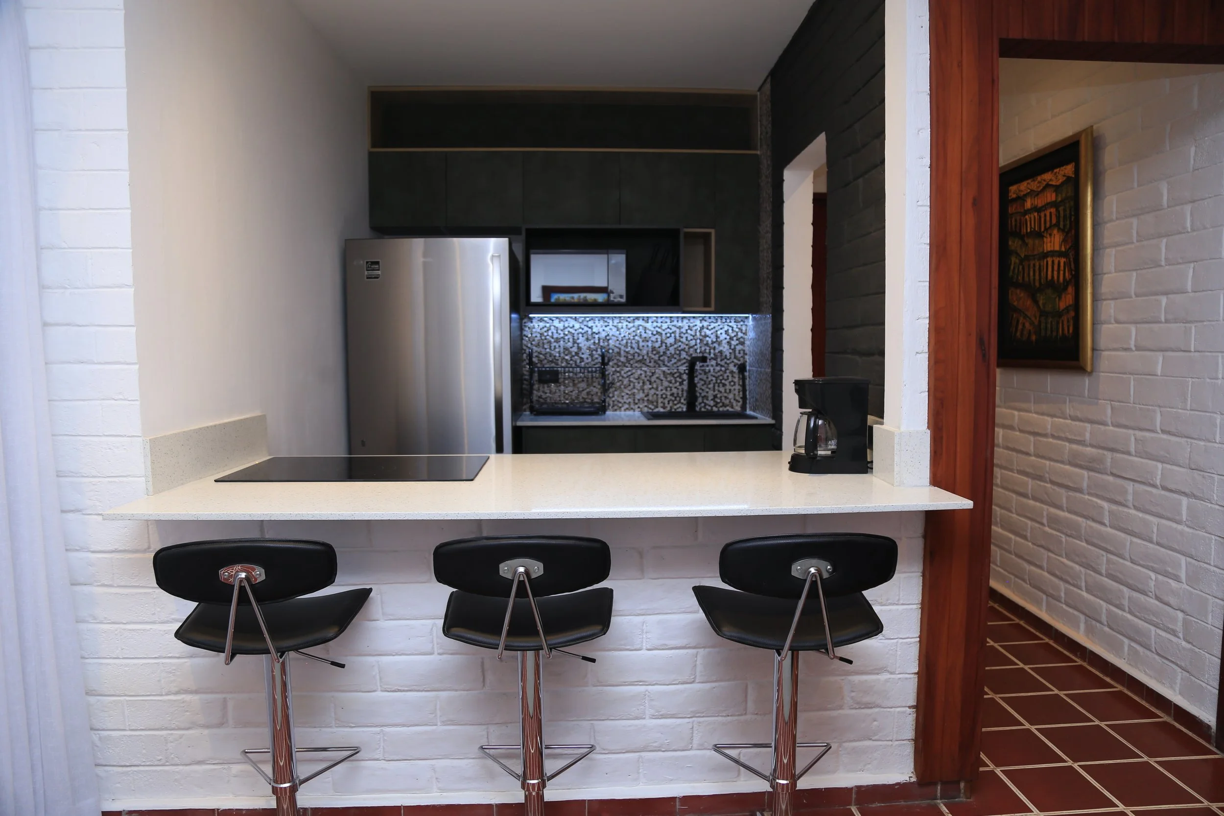 La suite cuenta con cama king, televisión de última generación, aire acondicionado, internet de alta velocidad, ducha con agua caliente, kitchenette totalmente equipada con línea blanca (Refrigeradora, cocina, microondas y cafetera), además con utensilios de cocina como platos, cubiertos y vasos. La suite también cuenta con toallas, sábanas y servicio de limpieza una vez a la semana.