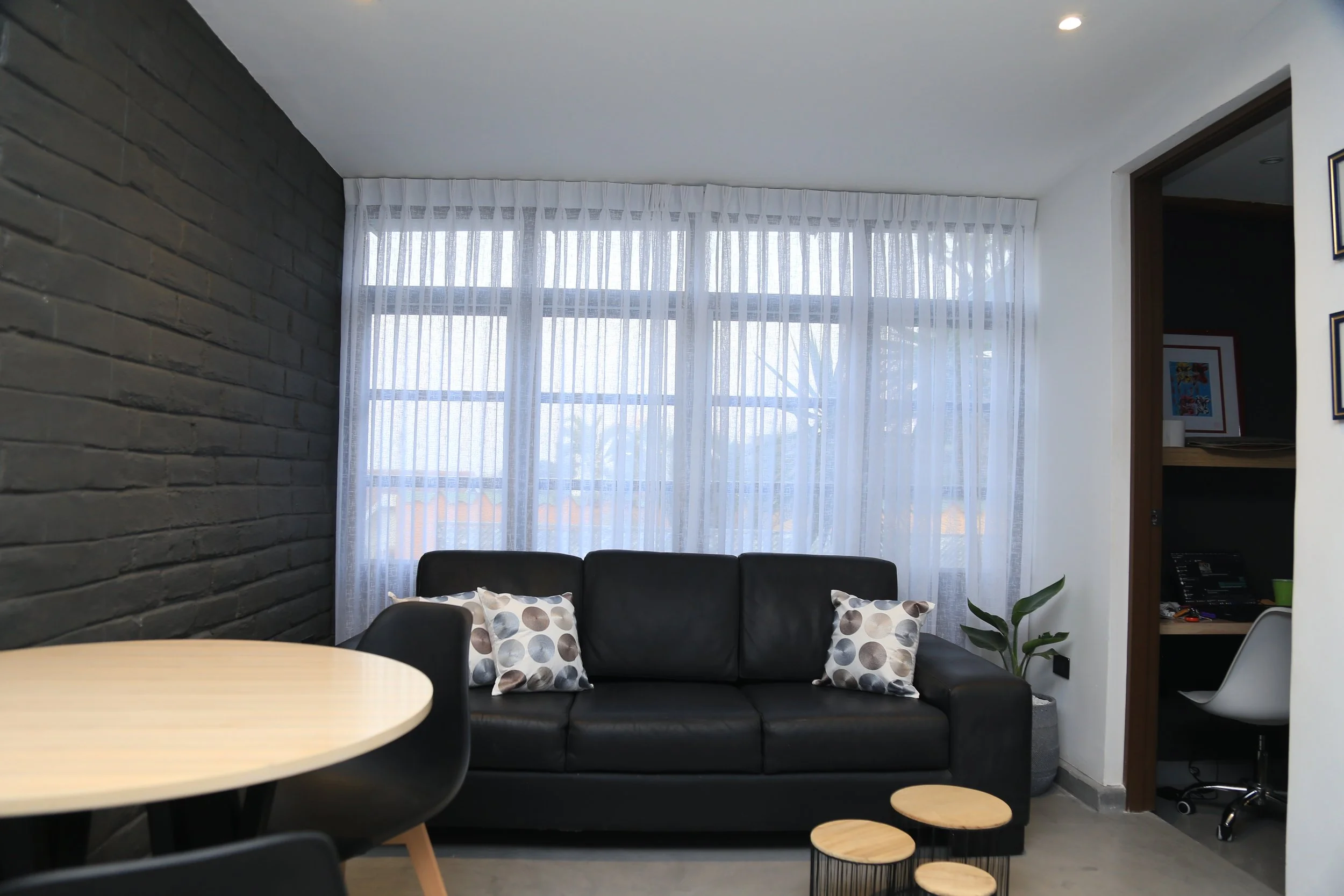 La Suite Gabriel García Márquez, con 30m2 cuenta con un área común amplia, con jardín y acceso directo hacia la piscina y una habitación cómoda, enfocada a una pareja o una persona en busca de espacios amplios y cómodos.