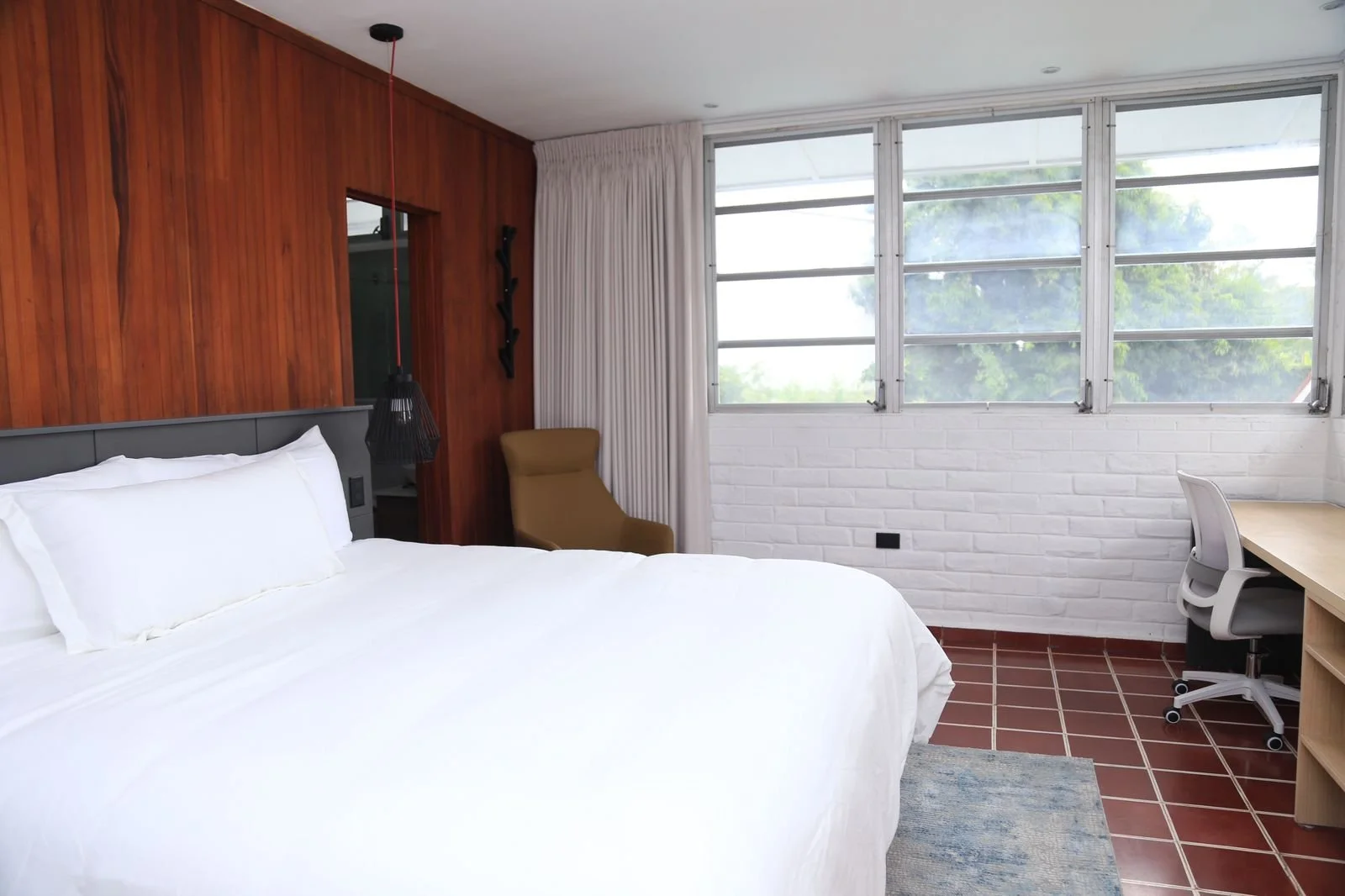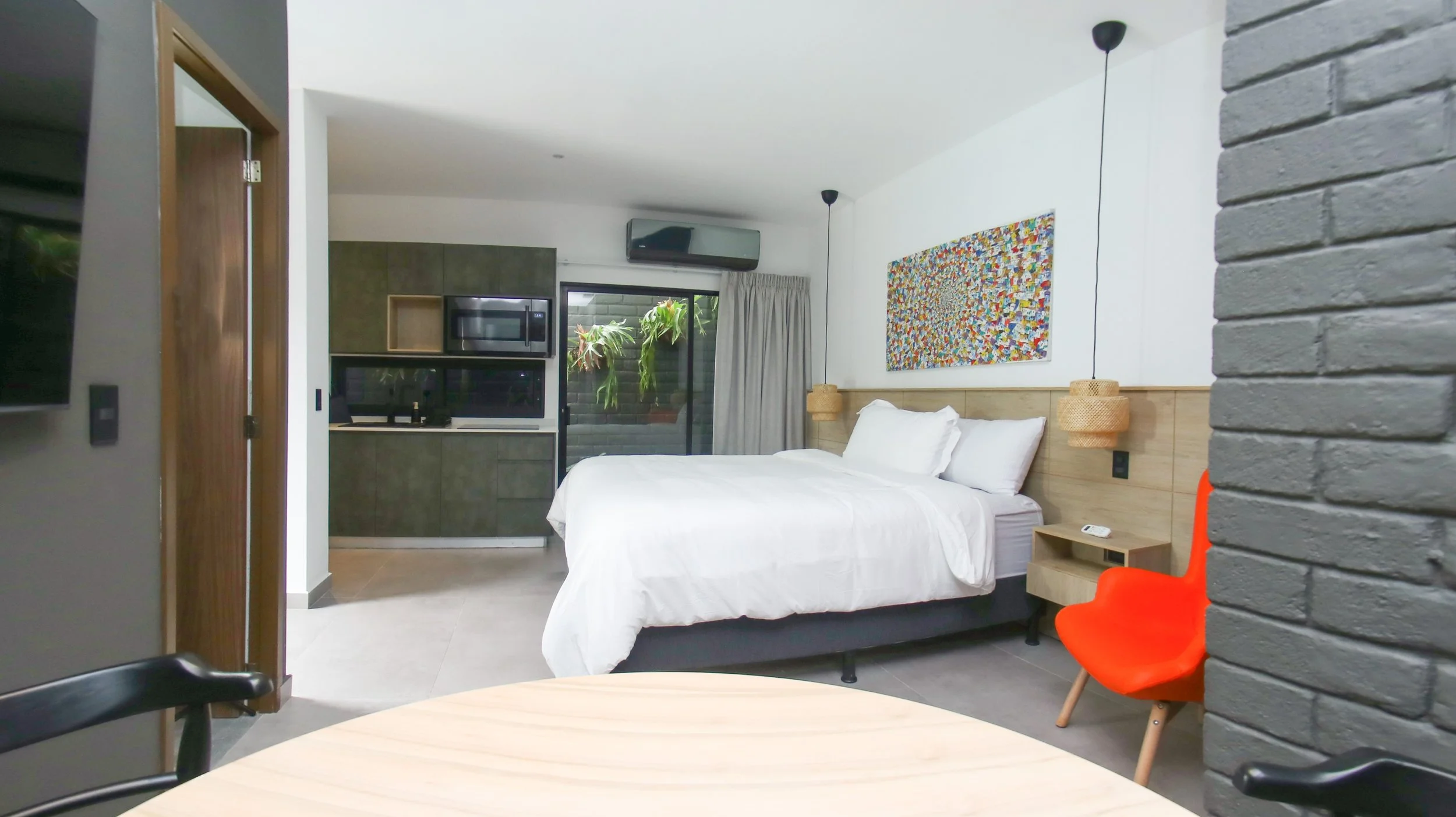 La Suite Miguel Ángel Asturias, con acceso directo al área de piscina, cuenta con 25 m2, está enfocada a personas solteras o parejas, que necesitan un espacio cómodo y privado en un área céntrica.
